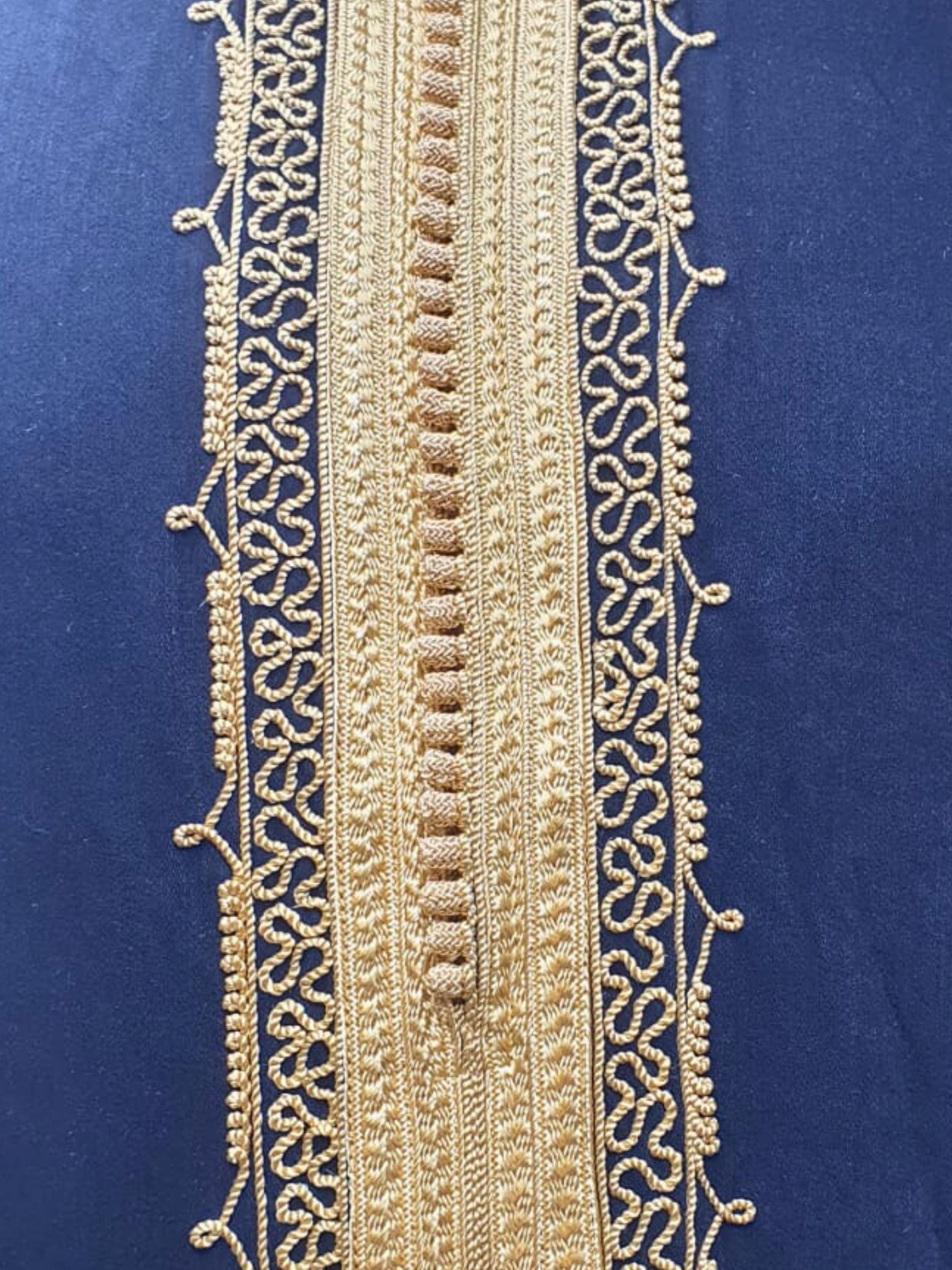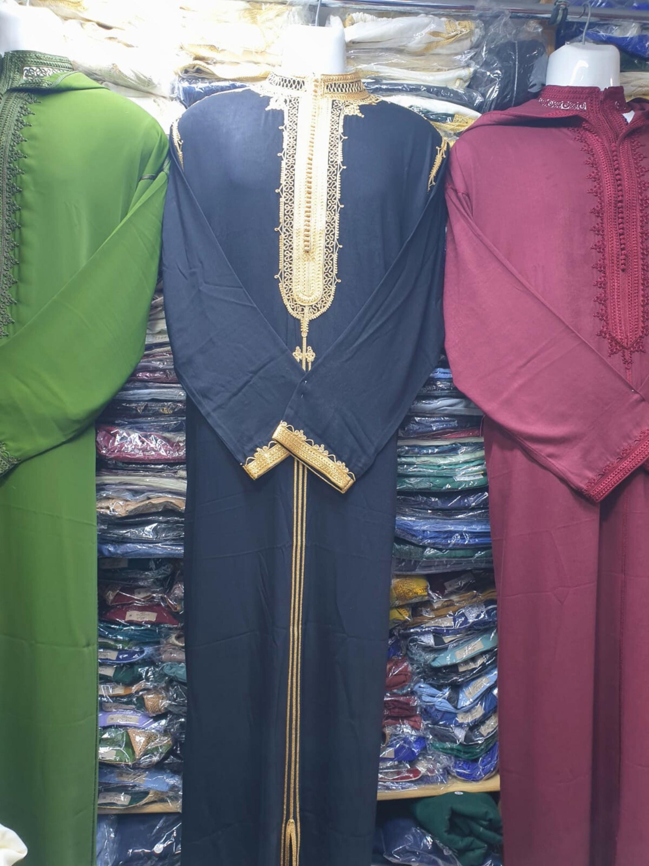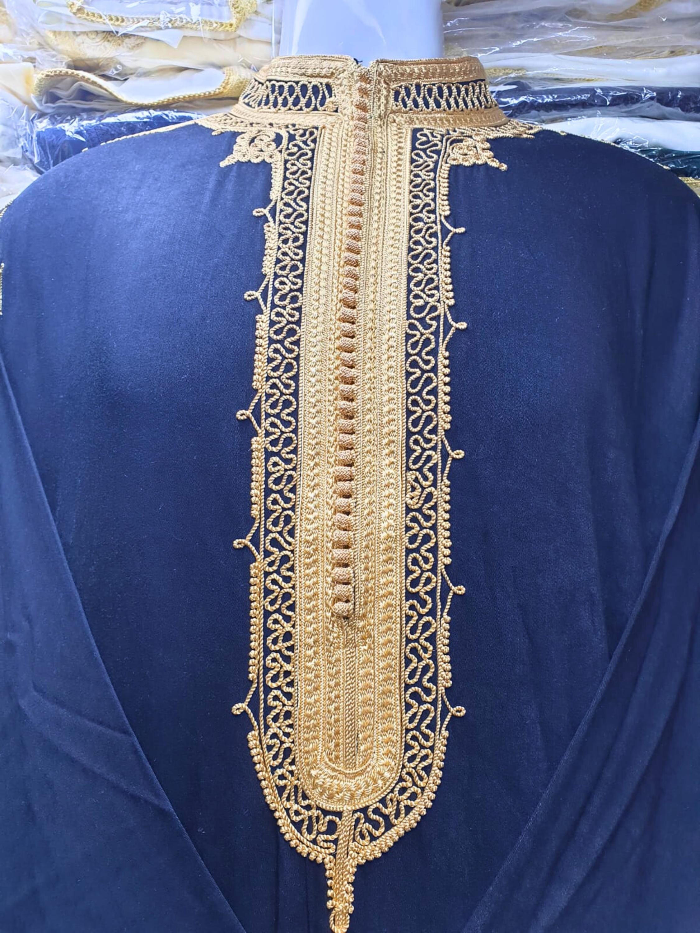 Elevate your style with this sophisticated black Moroccan men's Djellaba, featuring elegant gold embroidery and a distinctive central Knot.Perfect for special occasions or refined daily wear.