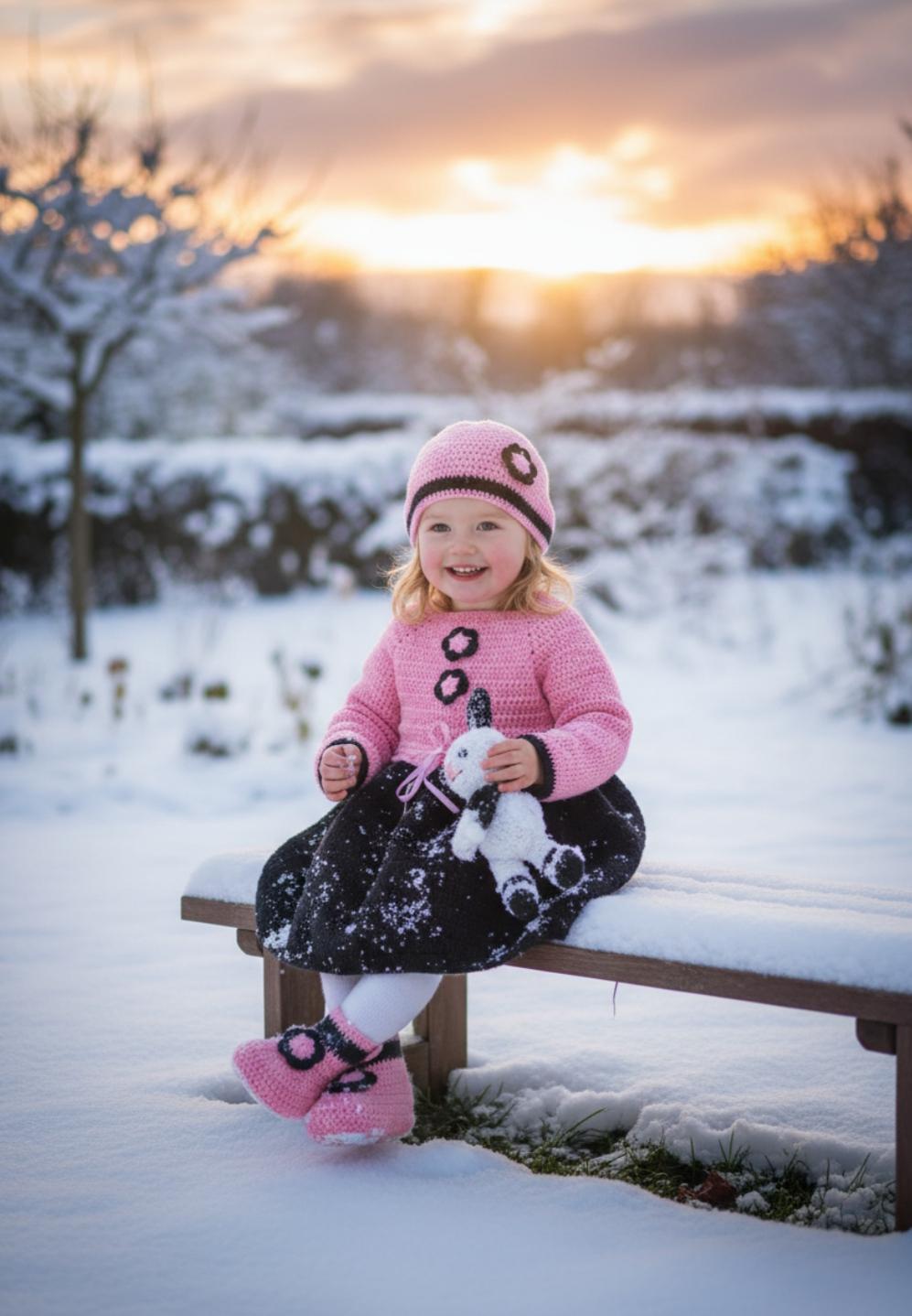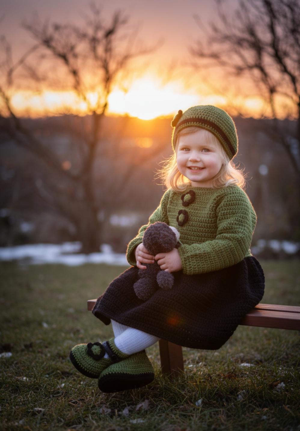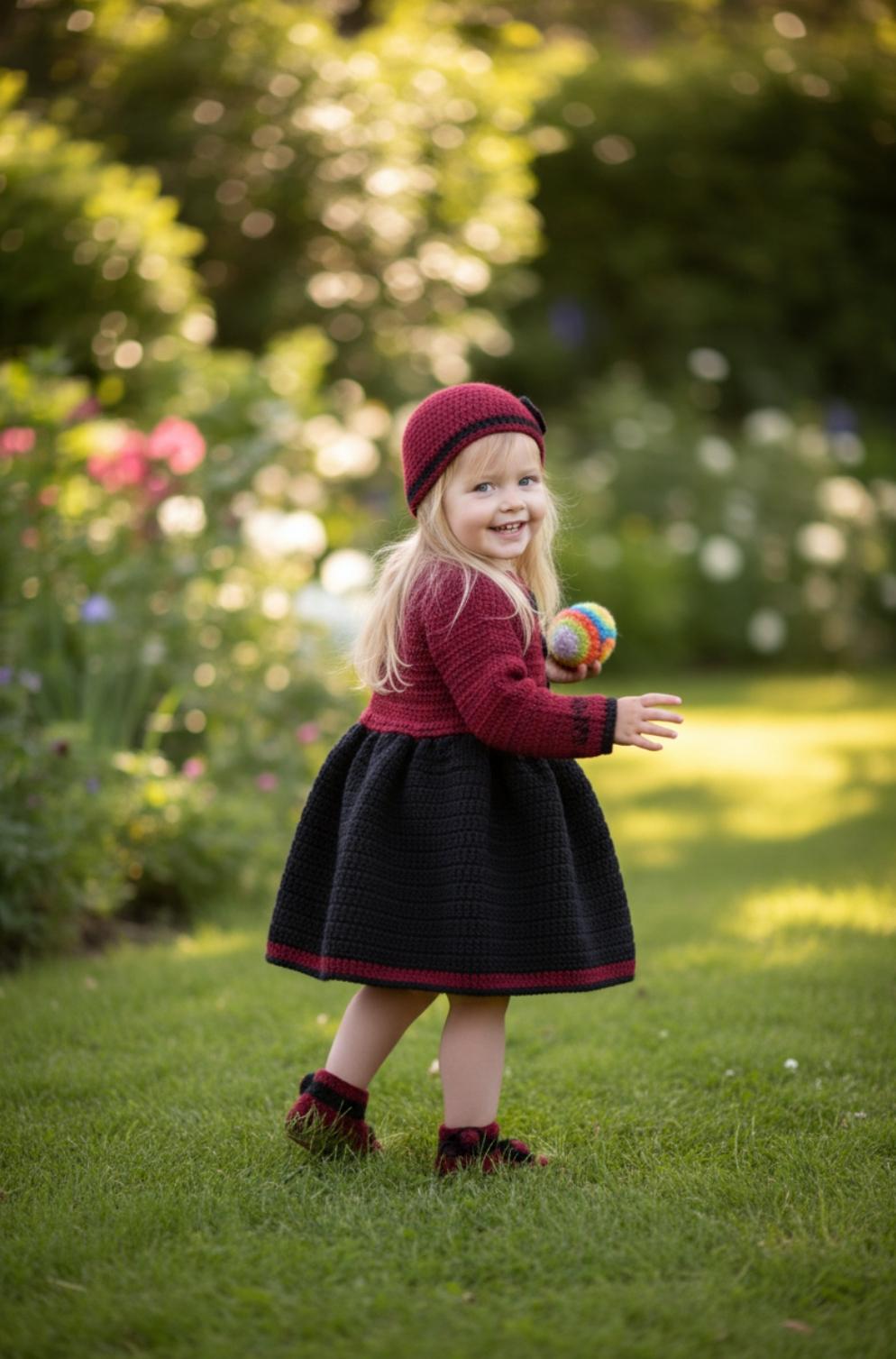 Elegant and warm girl's dress, handmade in crochet.