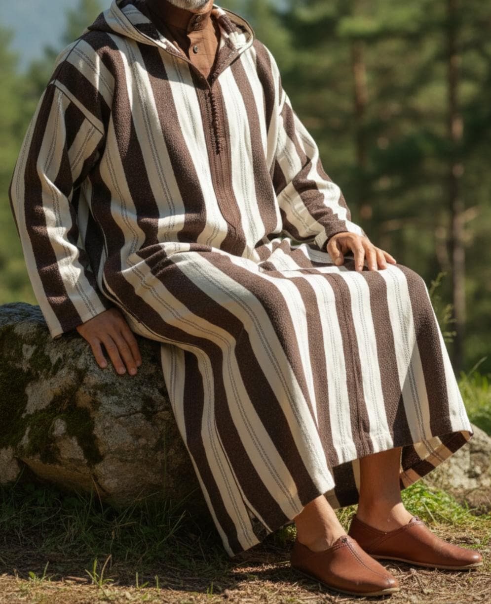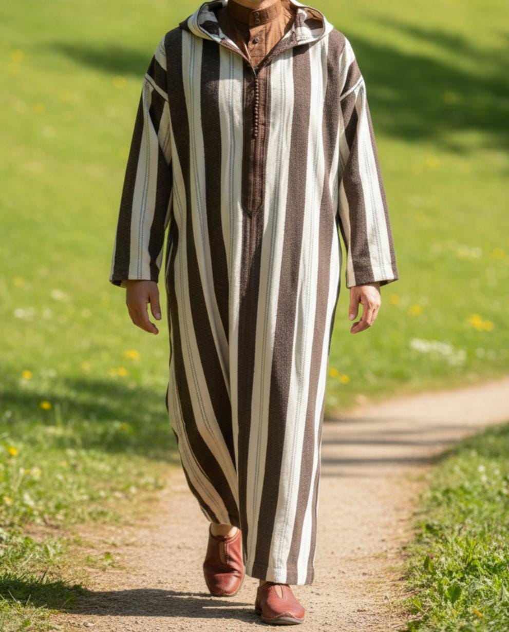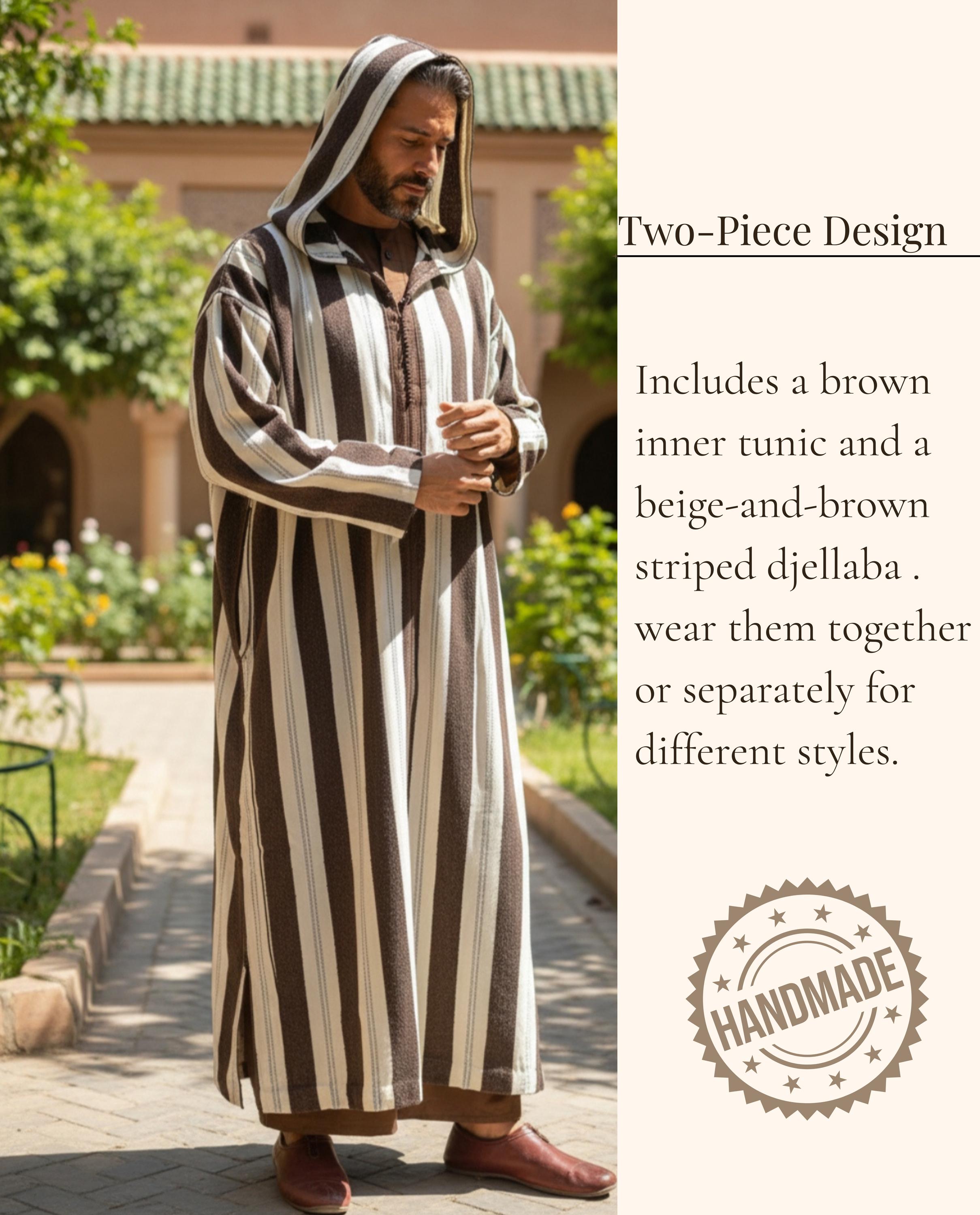Moroccan winter djellaba, winter djellaba, Moroccan djellaba, traditional djellaba, two-piece djellaba, men's hooded djellaba.