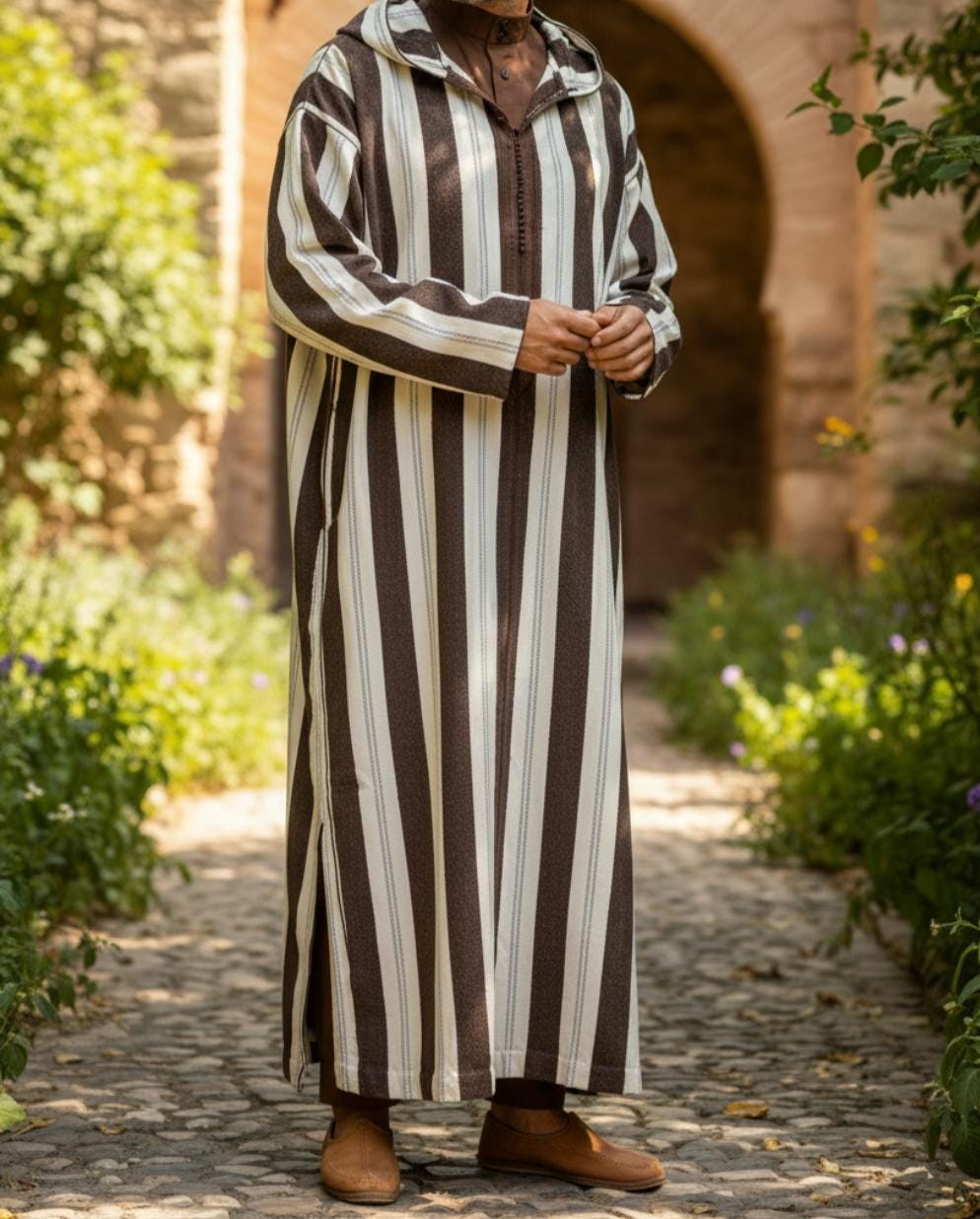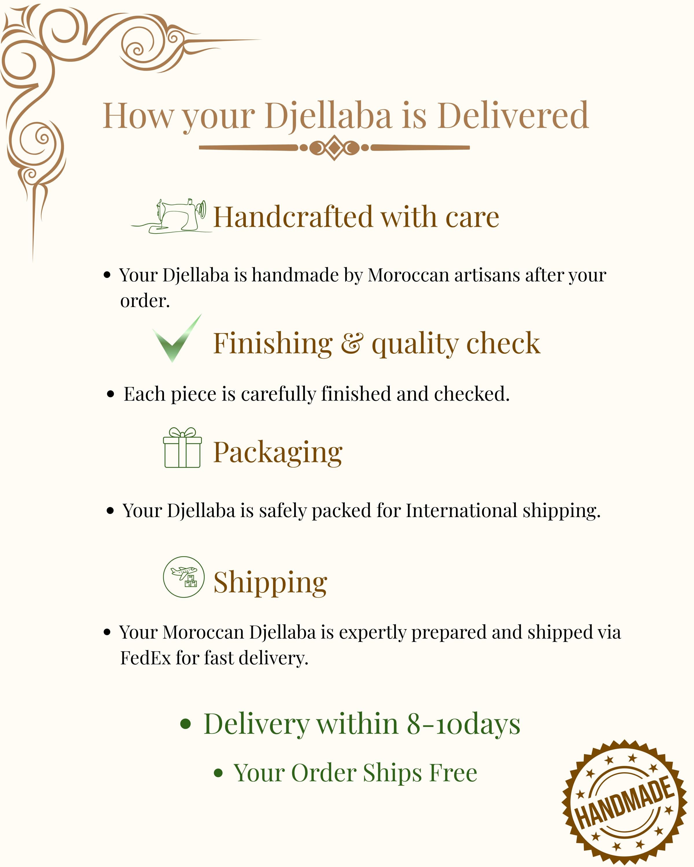 Includes a light inner tunic for warm seasons and an outer djellaba for colder days.