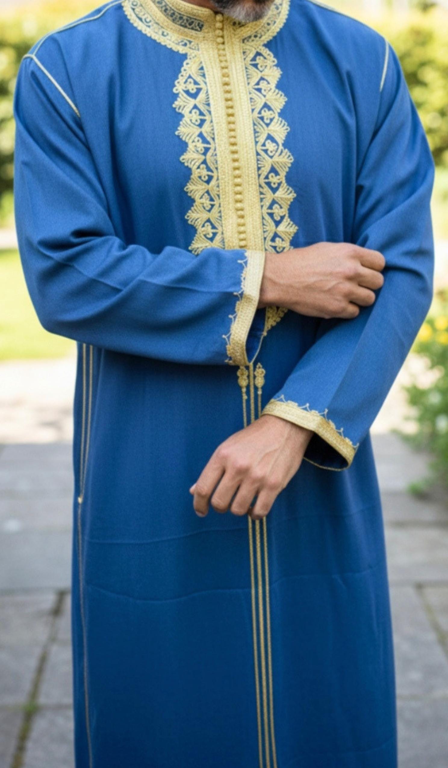 Celebrate eid in timeless elegance with this luxury Moroccan men's djellaba.Designed with authentic craftsmanship and refined details, it offers a sophisticated traditional look perfect for eid and special occasions.A statement of heritage, comfort, and prestige in one exceptional piece.
