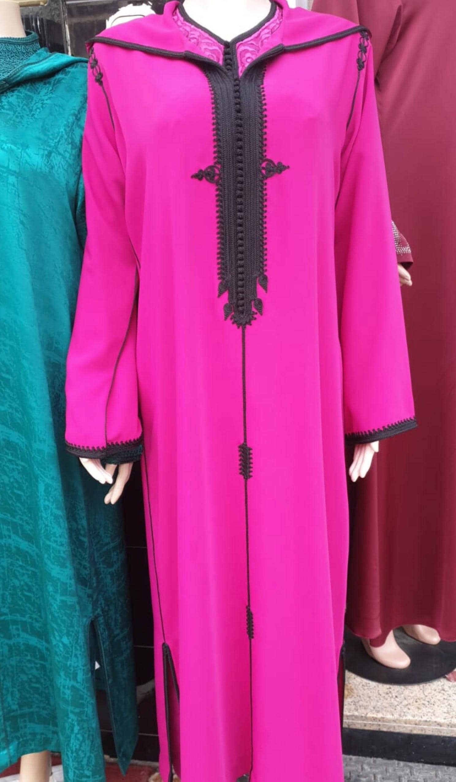 2 piece Moroccan women's djellaba set, luxurious djellaba with matching shirt, elegant prestige style.