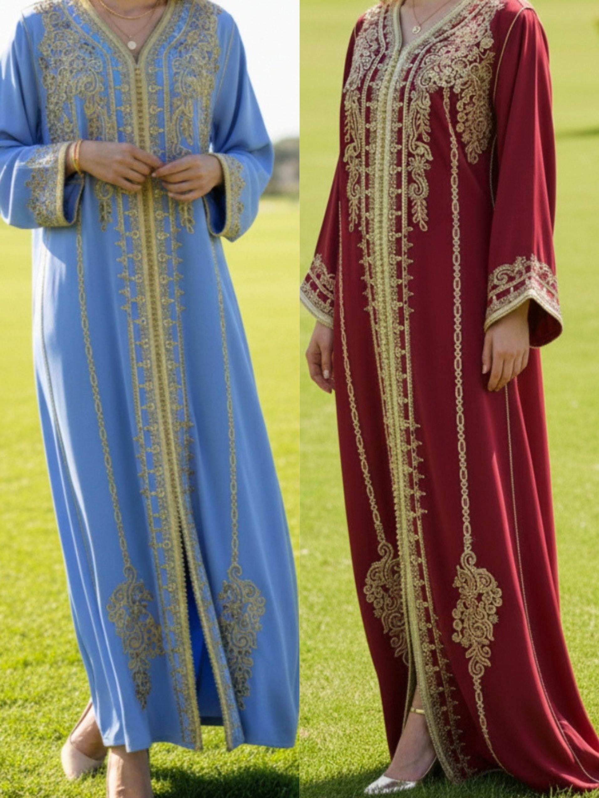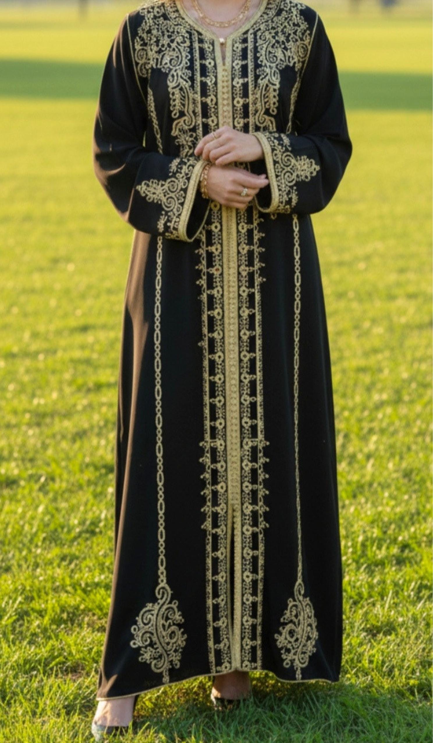 An elegant Moroccan Caftan with beautiful colors and refined traditional details, designed to bring timeless elegance and authentic charm to your look.