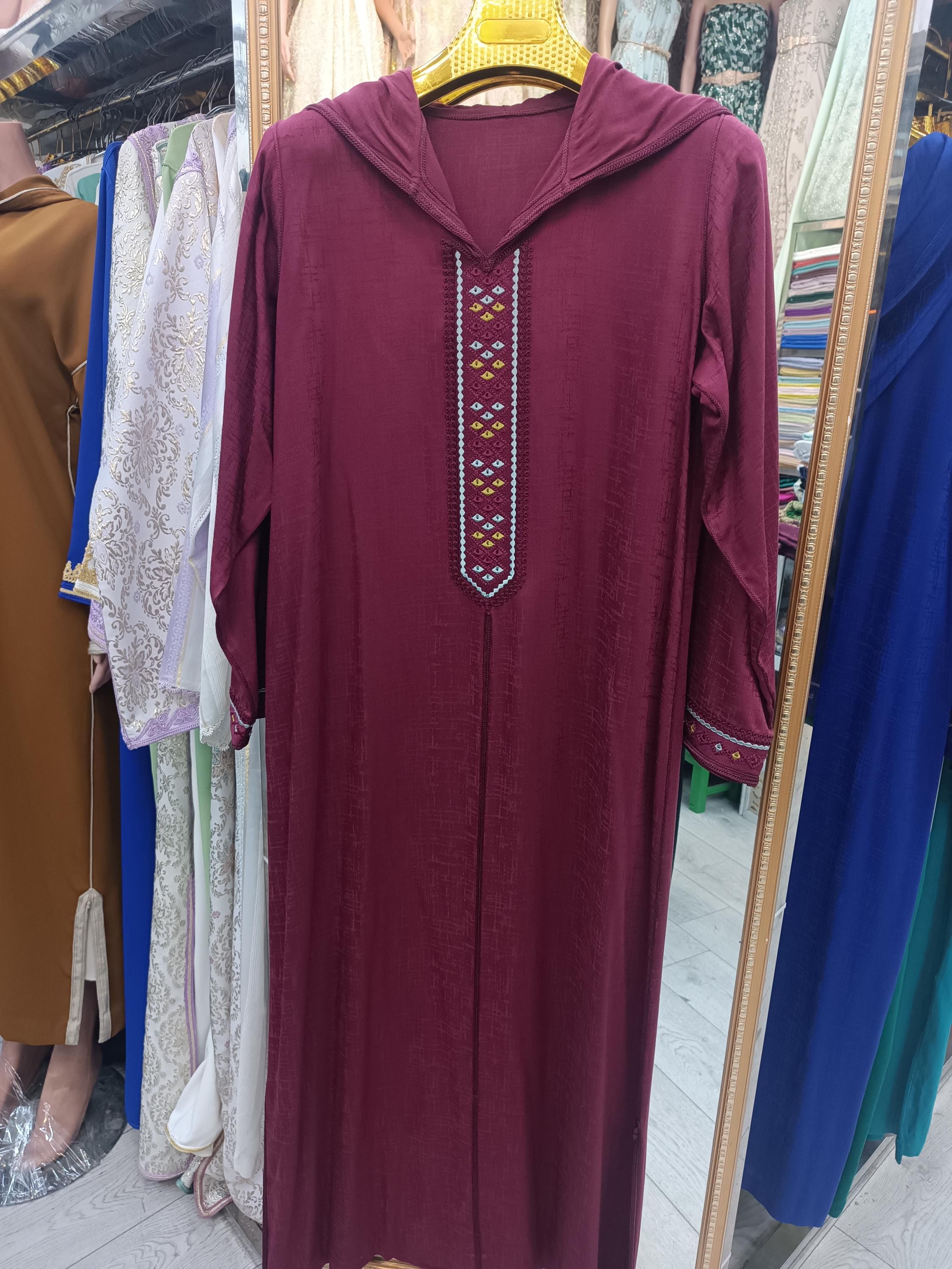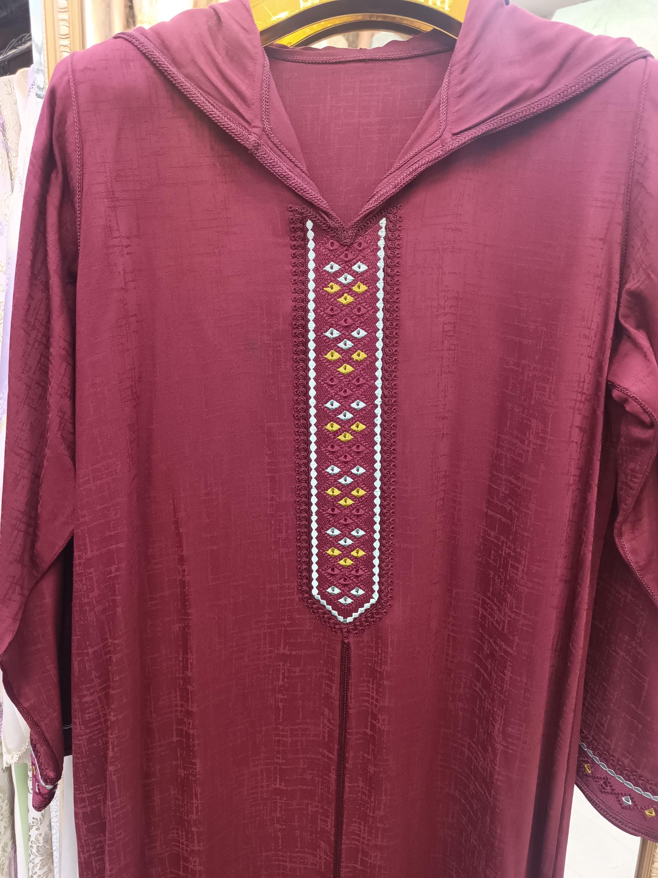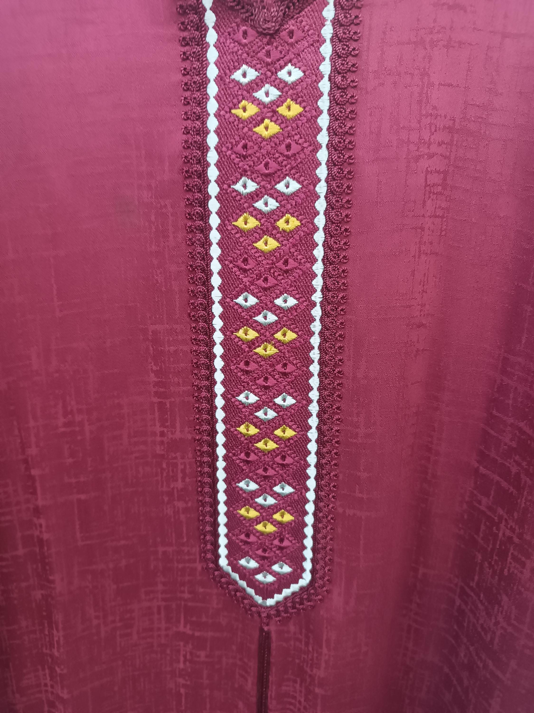 Luxurious red Moroccan djellaba, timeless elegance with refined traditional charm.